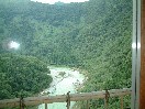 | 福島県に行ってきました。今回は台風との競走という感じで、土湯温泉には幸いに僕の方が先着して、無事に旅館に入ることができました。「向瀧」は土湯温泉の中では大きな旅館だと思いますが、全体的な印象としては、やや古くなった旅館という感じでした。部屋は8畳で、小さな広縁がついています。椅子も二脚ありますが、その椅子のところだけが一段低くなった感じの作りで、全体的に狭い印象を受けました。ただし、部屋に風呂もついています。部屋からの眺めは、下に荒川の流れが眺められ、ちょうど川が曲がるところに当たるので、変化に富んだ眺めになっています。また、林が川の方へせりだした形になっていて、建物なども見えず眺めは良いと言えます。 |