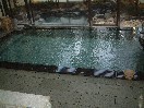 お風呂は渓流館の一階にあり、男女別で交代はありません。時間は24時間入浴OKですが、掃除の時間が9時半〜11時、3時〜4時と一日二回あります。お風呂の入り口に冷水機が置かれていますが、冷水機にすっぽりとかぶせるような形で、竹細工の民芸調のカバーが掛けられています。カバーなどは手作りで、非常に苦心の跡が見られます。また、茶碗が置かれていましたが、切れることなく補充されていて良かったと思います。大浴場は小ぢんまりした感じですが清潔感があります。男性の方は二面が窓になっており明るさを感じさせます。湯舟もそれほど大きくはありませんが、17室の部屋数にはちょうど手ごろな大きさだと思います。塩素臭はまったくしません。非常にしょっぱいお湯で、今まで入った中でも、かなりしょっぱい方だと感じました。浴槽のへり浴槽からお湯があふれる辺りは茶色い成分がこびりついています。お湯はやや温めの適温というところです。浴槽から少しずつお湯はあふれていますが、循環もしているようです。露天は大浴場から通じているタイプで、小さめの岩風呂です。大人が足を伸ばしたら3人が限度だと思います。目の前は雪が積もっていて、少しはなれたところに、杉の木がまばらにある斜面が見えます。その斜面の手前には川が流れているのですが、残念ながら川を見ることはできません。しかし、空と杉の斜面と雪、それだけで雪見の露天の景色としては十分ではないでしょうか。せまいながらも、ゆっくりと時間をかけて入りました。 |