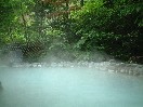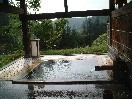 男性の露天は、脱衣所のすぐ裏側にあります。浴槽自体は15人程度の規模かなと思いますが、かなり広々しています。湯舟が一番低いところにあり、周囲の方が高いという「アリ地獄形」の露天で、蔭がまったくできず、カンカン照りの日にはキツイ露天です。蔭の出来ない露天の嫌いなぼくは、この日は日中にはほとんど入らず、日が傾いてからゆっくり楽しみました。開放感は360度近いと言っていいと思います。裏の林を見ながら入ることが出来ます。ただ、毎回申し訳ないのですが、女性用の露天はこんなに広くはなく、開放感もあまりないようです。内湯も露天も24時間いつでも入れます。石膏泉ということでしたが、なぜか硫黄っぽい匂いが肌着に残ります。また、源泉が熱すぎて味見がまたもや出来ませんでした。温泉の匂いもしていましたが、僕の好きなあのコンコンとした匂いではありませんでした。家族風呂は、内湯タイプのものが一つ、岩風呂という半露天タイプのものが一つあります。この岩風呂は雰囲気があってお勧めです。食事は玄関脇の食事処で夜も朝もいただきます。この日の夜は、米沢牛のビーフシチューをメインに、山菜鍋、茄子の煮物、岩魚の焼き魚などでした。やはり、初めにほとんどが並べられてしまう型で、岩魚などは冷めてしまっています。秘湯の宿としては合格点ではないでしょうか。ビーフシチューなどもいい味付けでした。朝は、まあ一般的な朝定食と言っていいでしょう。ただ、卵は茶碗蒸しになります。茶碗蒸の出来が、後一歩というところもありましたが、全体的においしかったです。シャーベットのデザートも出ました。秘湯の宿ですので、至れり尽くせりサービスはあまり期待しないとすれば、かなり満足度は高いのではないでしょうか。 |