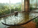 | お風呂はロビーへ向かう手前で浴場専用のエレベーターに乗り、地下に降ります。地下といっても斜面に建っている形の建物ですので見晴らしは十分にあります。入浴時間は夜の12時までで朝は6時から男女が交代します。大浴場は明るく、真ん中に四角い浴槽があり、右の壁に沿って岩風呂がジャグジーと普通のお風呂の二つに仕切られています。それぞれの浴槽はそれほど大きくありません。明るい清潔な感じの大浴場です。露天はこの大浴場から出る形の、四人ぐらいの岩風呂で、目の前を緑の木々に覆われ、右手上方にははるかに海を見渡せます。ただ、どばどばと勢いよく湯口から流れ出るお湯が循環であることを物語っています。最初女性の方の露天は全体が木々の葉に囲まれていて、見晴らしがなくちょっと暗めです。 この大浴場の前に湯上り処があり、カウンターに置かれた冷水機で冷えたおいしい麦茶を飲むことができます。麦茶の係の仲居さんがいて、その仲居さんによるとここのお湯は近くの南勢桜山温泉から汲み湯して運んでいるということでした。風呂場の表示にも加温、循環・塩素投入と書かれていました。しかしカルキ臭はありません。最近は塩素投入でもカルキ臭のしないところが多いようです。 お湯は汲み湯とは言えけっこう温まり、汗がなかなか引きません。ただ、湯上りがべたつく感じであることや、お湯が少し白濁した感じであること、大浴場の浴槽はそうでもないのに、露天風呂は湯の花だか湯垢だか不明なものが浮遊していることなど、運び湯であるという先入観がそうさせるのか、気になることがいくつかあり、手放しで礼賛という気にはなれません。いつもはシャワーなどで流さずに出てくるのですが、さすがにここでは流してきました。これらが源泉のもともと持つ性質であるのなら、なかなかいいお湯であるとは言えると思います。 |