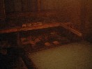 | 木のドアを開けて入ると、畳一畳分の板の間があります。右手の台の上に花瓶が置いてあり、花ではなく、葉のついた枝が入っていました。上がり口に、使い捨ての白いスリッパとマジックが置かれているのは以前と同じです。板の間にスリッパを脱いで上がると、そこはもう6畳弱の控えの間で、控えの間の真ん中にいろりが切られています。正面に大きな窓が取られていて、道路沿いの景色や窓の正面には山が見えます。この控えの間の右側に1畳くらいの広めの洗面所があり、洗面所に向かい合う形で、シャワートイレがあります。控えの間の左隣に10畳の主室があり、真ん中に炬燵が置かれています。主室の右側に控えの間と並んで窓があり、同様に、山、周りの道路、雑木などが見えました。窓に向かい合う形で1畳大の床の間があり、花がしっかりと活けられ、ティッシュとインターフォンが一段低い手前の板の部分に置かれていて、床の間にはメガネの入った文箱だけが置かれています。床の間の左にテレビの置き場があり、その下が金庫になっています。やはり、部屋でのお茶出しはなく、部屋には前回同様、夕食後に福地情話という平べったいお菓子が置かれていたました。 前回の部屋の様子などすっかり忘れていましたが、大体、似たような感じだったと思います。前回評価した、クローゼットの大きさですが、今回、ぼくはあまり気にしなかったようで、メモにはありませんでした。ただ、多分、前回同様に大きかったと思います。 ところで、この部屋に案内されるとき廊下から外を見たら、さっきの舎湯で見た車が敷地内に置かれていました。やはりあの舎湯の愛想のいい人は、前回の無愛想なここの若主人だったのでしょうか・・謎です。 お風呂は前回と同じなので割愛させていただきます。ただ、前回はあまり気にならなかったのですが、露天、内風呂とも浴槽の底がざらざらした感じになっていて、女房はこれが痛くて気に入らない様子でした。前回は何も言わなかったのですが・・ ぼくとしては、言われてみれば確かにそうかな・・程度です。 |