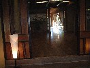 | 大浴場は一階の端にあり、ちょうどこの部屋からは一番遠い感じになります。リゾートホテルで大浴場のあるところは、浴衣やバスローブで部屋から出られるところもありますが、ここは浴衣はあるものの、浴衣での移動は禁止で、お風呂はスリッパだけがOKです。浴衣やパジャマになってしまうと着替えなければならないので、それが少々面倒です。受付でルームナンバーを言って、タオルとロッカーのキーを受け取ります。外来入浴も受け付けているようですが、値段は1500円だったと思います。宿泊者は何回でも、途中の清掃時間を挟んで、朝の6時から夜の12時まで入ることができます。男女の交代はなく、露天は付いていません。また、脱衣所に学校にあるような冷水機が備えられていますが、湯上がりどころとも言うべきところには冷水などはありませんでした。大浴場は天井も高く、湯舟もかなり広いものです。多分30人以上は入れるのではないでしょうか。天井が高いせいか、湯気が浴場内にこもることがありません。お湯は茶色く濁っているお湯で、表示にはカルシウム塩化物泉と書かれていました。茶色と言っても赤に近い感じでした。けっこうインパクトのあるお湯で、ぼくは気に入りました。鉄分は口に含んでもあまり感じなかったのですが、気のせいか湯船に入ると金気の臭いがした気がします。泉温は28度ということで、加熱しているようですが、適温の流しきりのお湯が湯船の端からあふれ出ています。ガラスが大きく取られていますが、すぐ塀に囲まれて見晴らしはなく、ハウステンボス特有の建物がその向こうに姿を見せています。流し切りだということで、かすかに期待していたところもあったのですが、その期待を裏切らないお湯で、かなり気に入りました。ホテルですので客室数は大分あると思いますが、洗い場は10箇所で、まあ、温泉がメインではないのでこんなものでも十分なのでしょう。洗い場にはシェービングフォームが置いてありました。 |