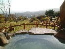 | お風呂は露天の家族風呂が一つ、小屋掛けの家族風呂が二つ、内風呂が二つ、それに露天は男女混浴が一つに女性専用が一つというラインナップです。お風呂は11時までで、男女交代はありません。内湯の家族風呂だけが24時間入浴可能です。内風呂は薬師の湯という名前がつけられていて、三人ぐらい入れば一杯になりそうな狭い岩風呂ですが、板壁に囲まれていて、なぜか雰囲気は非常に感じるお風呂で、温泉好きの人は結構気に入りそうな感じです。この内湯もそうなのですが、旅館山河のお風呂は三つの家族風呂を除いて、洗い場の蛇口はありません。混浴の露天へは西館近くの専用の出口から、外へ出て行く形になります。露天は周りを黒い板塀で囲まれていますが、けっこう広いので開放感は感じられます。湯船の一角に小さなあずまやのようなものが建てられていますが、こちらは神秘的な感じは受けません。混浴とはいえ、脱衣所は分けられておらず、ちょっと女性は入りにくいかなという感じです。湯船への入り口近くに、湯口があり、その近くは熱めですが、離れると少し温くなるようです。お湯はどこも流し切りです。薬師の湯と露天とは源泉がちがうとのことで、薬師の湯のお湯の方がお勧めだと仲居さんは言っていました。確かに名前から言っても薬師の湯の方が効果がありそうです。混浴露天には飲泉できるところが作られているのですが、この飲泉用のお湯だけは薬師の湯と表示がありました。この混浴露天の近くには、女性専用の露天と小屋掛けの二つの家族風呂があり、薬師の湯の男女二つの内湯はロビーの反対方向にあります。一つだけ離れて露天の家族風呂が、宿の玄関へ至る坂道の途中にあり、山の斜面にそって、景色の楽しめる丸い木の湯舟になっていてゆっくりできます。それぞれにいいお風呂だと思いました。 |