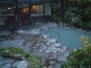 | お風呂は一階にあり、男女交代はなく、24時間入ることができます。大浴場から露天に出る形で、大浴場の一番手前の浴槽から50度近くある源泉を投入し、隣の広い湯舟を通って、露天の打たせ湯に、そこからさらに露天の広い湯舟へと連続して流れていく造りになっています。最初そのことに気づかずに、分析表に飲泉可と書かれていたので、露天の湯口のお湯を二杯くらいのんだのですが、おいしいものでした。ちょうどそこへ、湯守さんが来たので、「これ、飲んでいいんですよね。」と聞いたら、そのお湯の仕組みを説明してくれました。ゲッとなりましたが、別にお腹はこわしませんでした。内湯は手前の一番熱いところは、ちょっと熱すぎました。その湯舟に足を入れて湯口までいかないと源泉は飲めないので、飲むことができませんでした。湯守の人も、あそこは入れませんよ、とか言っていたので、相当の人でないと入れないのではないでしょうか。その次の広い内湯もまだ熱めです。大浴場は石造りの湯舟で、17室の割には広いと思いました。露天は庭へ降りる形で、最初の打たせ湯は二人くらいの広さです。さすがに、熱いお湯も外に出ると冷えすぎるようで、ここでまた少しお湯を足しているそうです。そして、最後は6・7人くらいは入れそうな割と広目の露天です。三分の二くらいは屋根がかかっていますが、屋根のないところから久しぶりの星空が覗けました。湯の花などはありませんが、源泉の流し切りで、そんなに客数も多くないせいもあって最後の温めの露天までお湯は清潔です。泉質は単純弱放射能泉と書かれていました。放射能とはラドンのことのようです。ここはそれぞれの旅館が源泉を持っているようで、さつき別荘は地下150メートルのところから汲み上げているということでした。お湯には詳しくありませんが、けっこういいお湯ではないかと感じました。 |