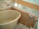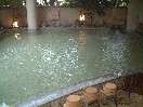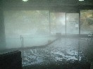 露天は大浴場に面して設けられています。大浴場の外のわずかなスペースを最大限利用したという感じで、スペースが狭い割には、ほとんど湯舟になっているせいで意外と広く、6・7人は入れるでしょうか。大浴場のガラスと、反対側の塀にはさまれ、露天の開放感はまったくありません。見上げると長方形の形に区切られた空がわずかに覗けるだけです。また、この露天は温度調節が難しいらしく、初めはかなりぬるかったのですが、しばらくして従業員が来てバルブを開き、熱いお湯がドバドバと流れ込んで熱めになりました。ただ、熱い源泉を一気に入れたのでお湯が表面は熱く、下はぬるいという状態になり、手でかき混ぜながら入っていたら、また従業員がお湯をかき混ぜに来ました。ただ、これはお湯を循環させる装置がついていないということでもありますので、源泉流し切りということです。大浴場はやや低めの適温で、こちらは温度変化はなかったようです。こちらも流し切りだと思います。泉質は食塩泉で、極端に塩辛いというほどではありませんが、やや辛目ですね。 |