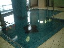 翌日は蓮台寺の「清流荘」です。伊豆の名旅館です。入っていきなりギネスブックに載っている大灯篭(写真3)があります。泊まった部屋は本館でした。古い建物で部屋はそれほど広くはありません。風呂は非常に透明感あふれる名湯という感じで、口にふくんでみるとあまさがあり、とてもおいしい気がしました。ただ、飲泉できるかどうかは分からないので、飲みはしませんでしたが。お風呂は夜の10時に交代で、最初の男性の方は宿の規模に見合った大浴場(写真4)と露天だと思います。露天は狭くも広くもないという感じですが、この宿全体の敷地が非常に広いため、開放感は感じます。一応囲われてはいるのですが、遠くの噴水が高く上るのを見ることができます。温度は適温ですが露天はややぬるめです。女性の方は、大浴場の浴槽がせまいと思いました。4人ぐらいしか入れないのではないでしょうか。露天はまあまあの広さですが、メインの浴槽がちょっと浅すぎる気がしました。家族風呂も一つあり、内湯も露天も付いている立派なものです。ぜひ、この家族風呂には入った方がいいと思います。この旅館は全体に落ち着いた重厚な感じがありますが、外のプールはしゃれた感じです。リゾート地のプールという感じがします。一年中使えるように手入れがしっかりとされていました。とにかく、大人のゆとりを感じさせる宿で、読書コーナーや、音楽を聴くコーナー、さらには映画室まであって、この日は「第三の男」を上映していました。食事は完成度の高いものです。夕食は本来は懐石なのだと思いますが、今回の旅行会社の企画で鯛しゃぶがあったために、ちょっと変更されているのでは?と思いました。伊勢海老のお造りも、鴨肉の蒸し物も、カサゴの空揚げもおいしかったです。最後に鯛しゃぶのスープで雑炊を作りましたが、これも非常においしかったと思います。朝食も、一般的な朝定食にプラスアルファという感じで、おいしいものでした。客室係は年配の方でしたが、こちらの質問攻めにもいやな顔一つせずに、丁寧に対応してくれました。この方のお辞儀もしっかりしていました。ということで、やはり「清流荘」は欠点の少ない宿だと思います。