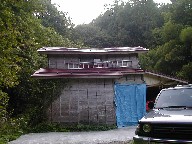 幹線道路からちょっと入るとすでに道は細く砂利道。さらに「ここ行けるの?」って感じの山道をおっかなびっくりたらたら行くと自衛隊の射撃場(ここだけ妙に道がいいんだよね〜)、Uターンをする幅もなくただただ不安になりながらさらに先へ進むこと数分で目指す上湯谷山荘に到着です。 |