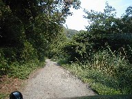 左と下の写真は、唯一の進入道路。砂利またはコンクリート舗装です。下の写真は唯一見かけた「人」、草刈りをされていたので、上湯谷の元の住民の方と推測しました。