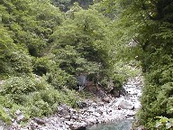 加治川ダムから林道を8km強、駐車場に車を止めて歩くこと約1時間(3.4km)、加治(飯豊)川沿いに見えてくる女湯。ブナ林と時々見える清流の景観を楽しみながら、歩くのがお勧め。それなりのアップダウンがあるので、準備は怠りなく。 |