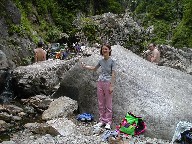 私たちはこの岩の陰で服を脱いで入りましたが、ここは向かってくる人からは大変よく見えると思います。 |